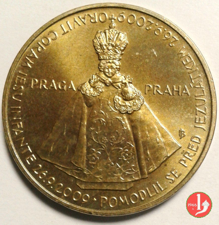 Visita a Praga 26-09-2009 Dritto: busto di 3/4 a sx con berretto, mozzetta e stola nel campo, a sx: triregno su chiavi decussate sotto, circolarmente: • BENEDICTUS • PP • XVI • il Bambino Gesú di Praga di fronte ai lati: PRAGA _ PRAHA in basso, a dx: JB | |