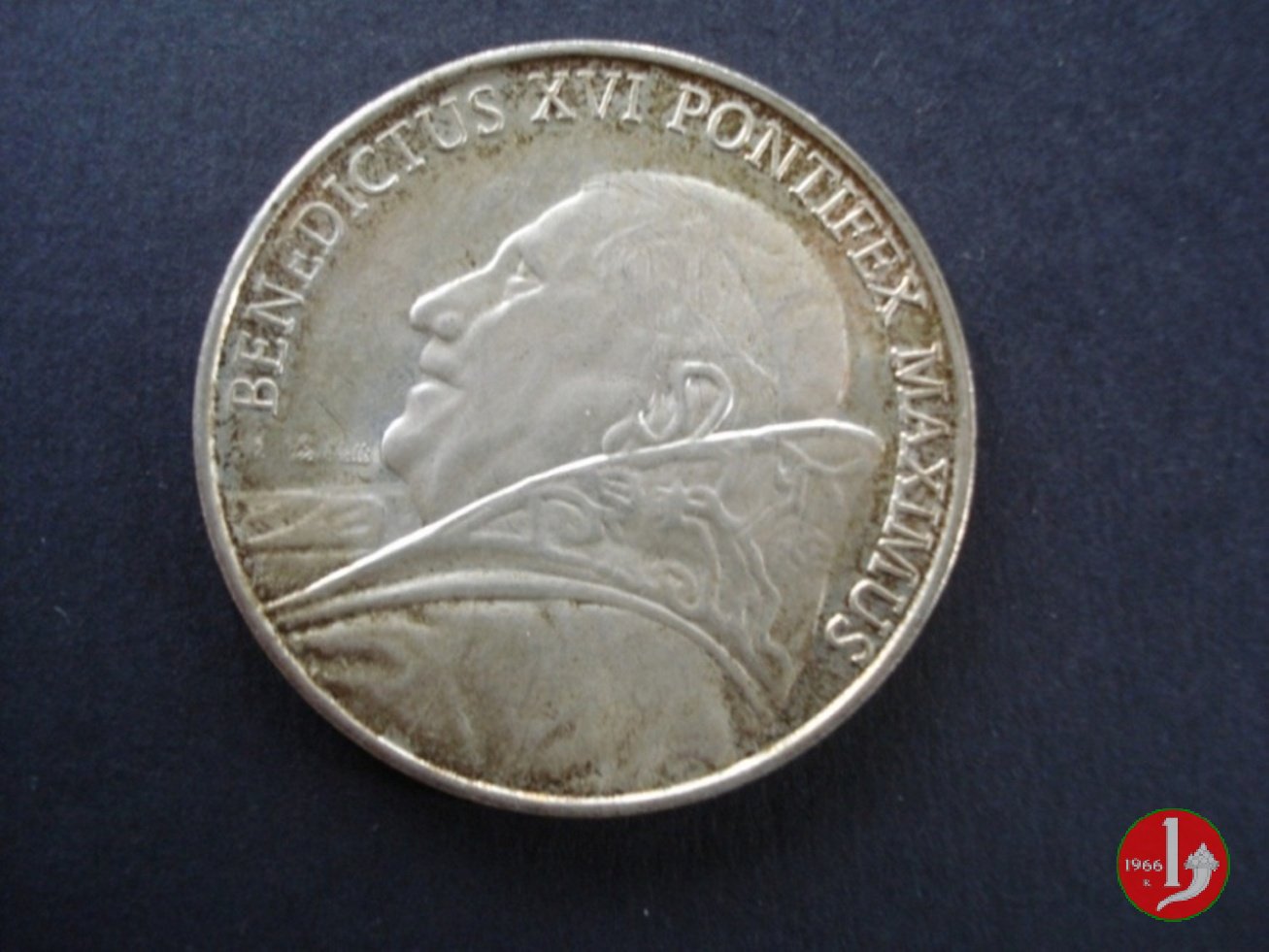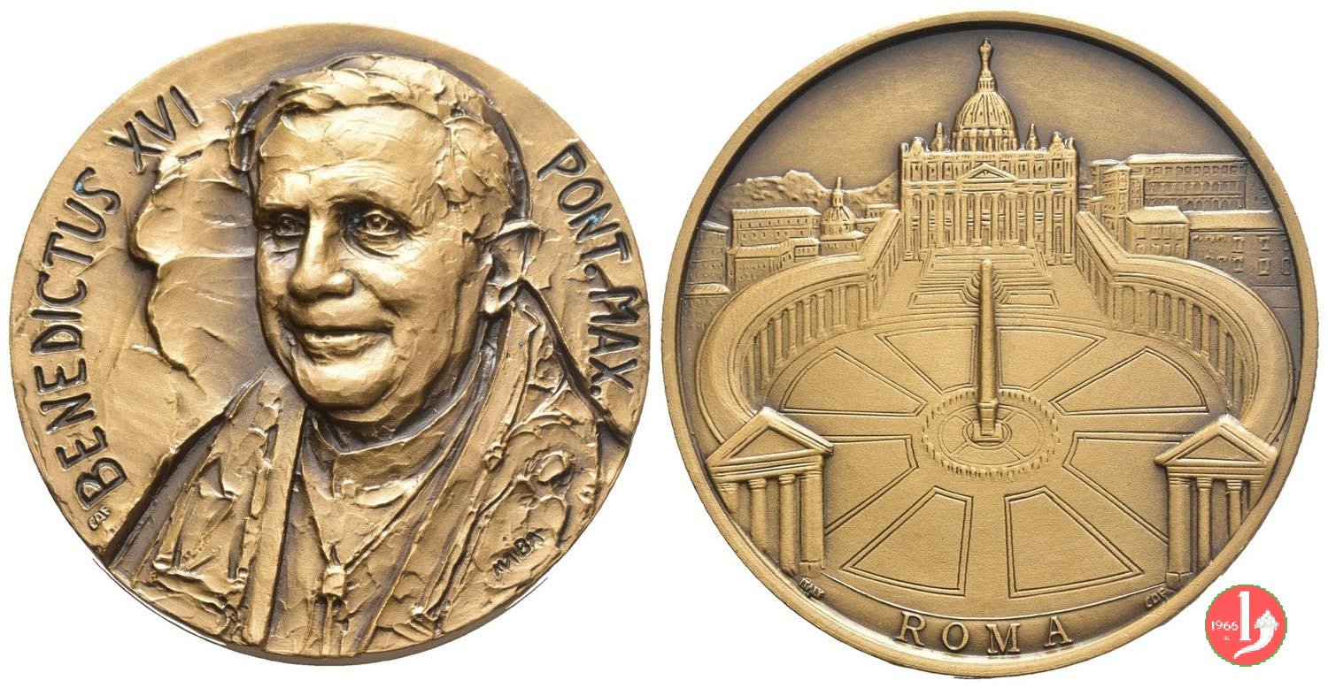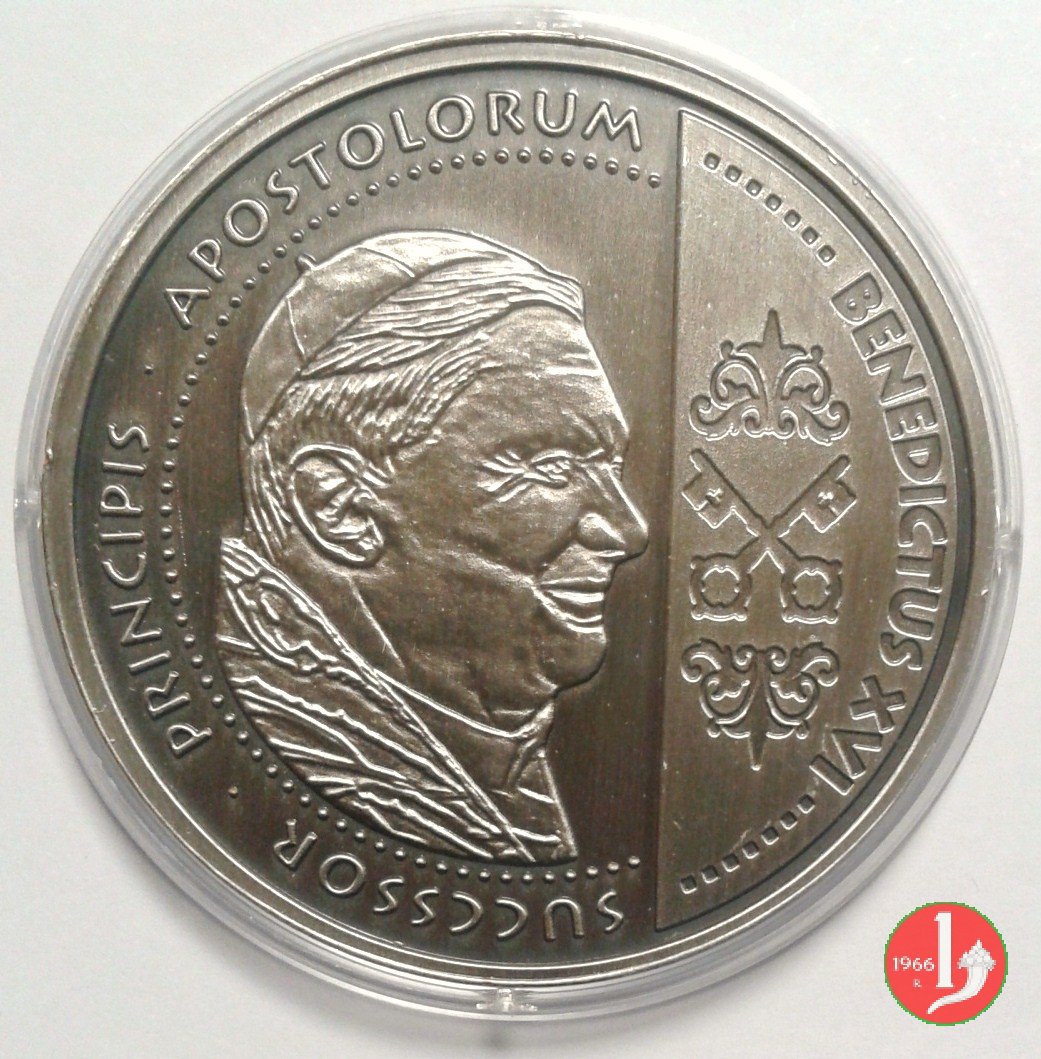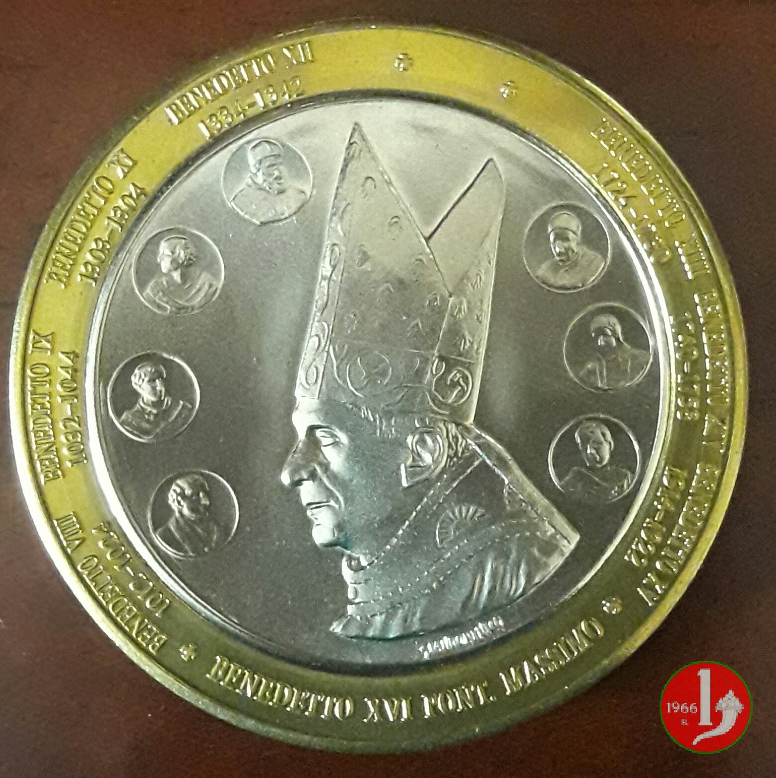 San Pietro 40mm Dritto: SUCCSSOR • PTINCIPIS • APOSTOLORUM _ BENEDICT XVI in campo bipartito verticalmente: busto a dx con berretto, mozzetta e stola chiavi decussate tra fregi sotto: PETRUS | |