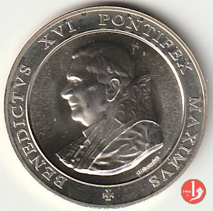 Stemma Papale 32mm Dritto: BENEDICTVS XVI _ PONT. MAX. busto di 3/4 a sx con berretto, mozzetta e stola in basso sul busto: MABA in basso a sx: CDF in basso: CDF | |