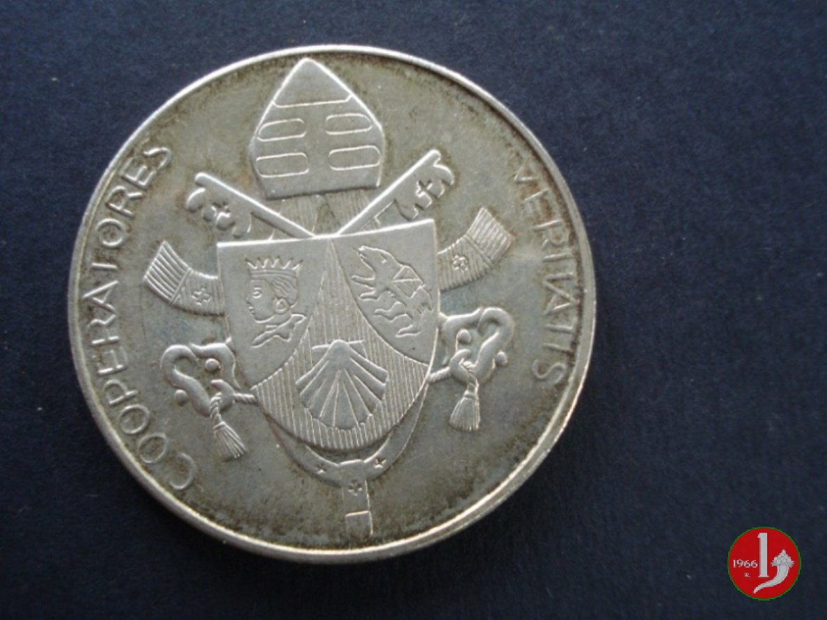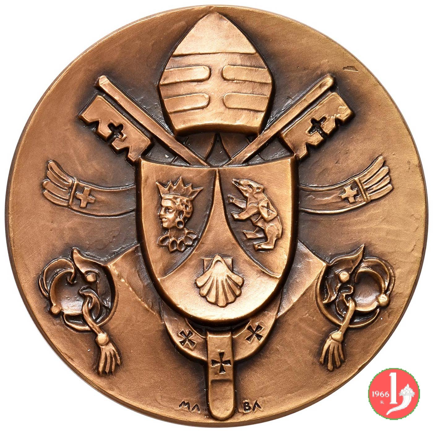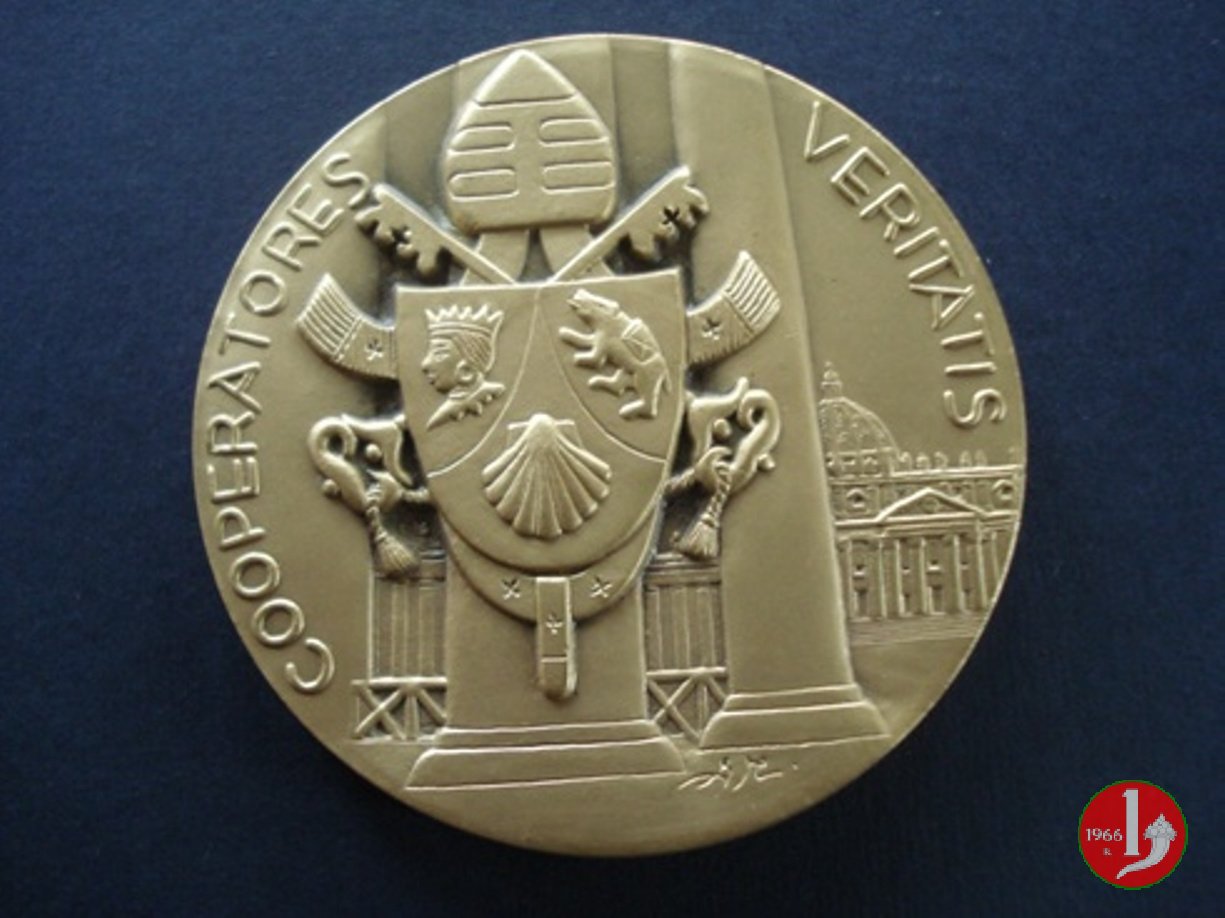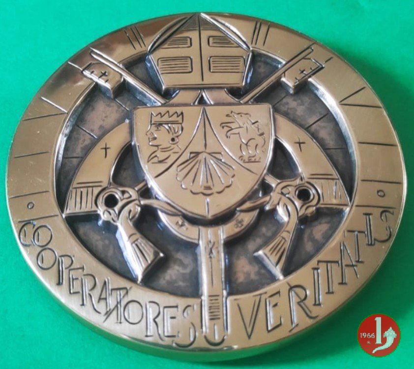 Stemma Papale 46mm Dritto: busto di fronte con berretto, mozzetta e stola Verso: Stemma Papale sormontato da mitra tripartita su chiavi decussate sotto entro nastro: COOPERATORE VERITATIS | |
