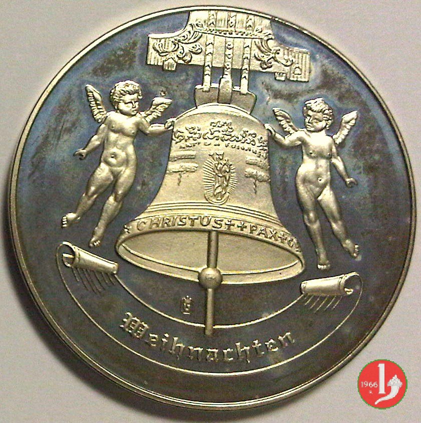 Natale - Weihnachten 35mm Dritto: in alto: angelo in volo di fronte sotto: busto di 3/4 a dx con berretto, stola e Croce pettorale, sullo sfondo la Basilica di San Pietro sotto la Capanna di Betlemme sormontata da stella cometa e albero di Natale a dx sotto, entro nastro: WEIHNACHTEN | |