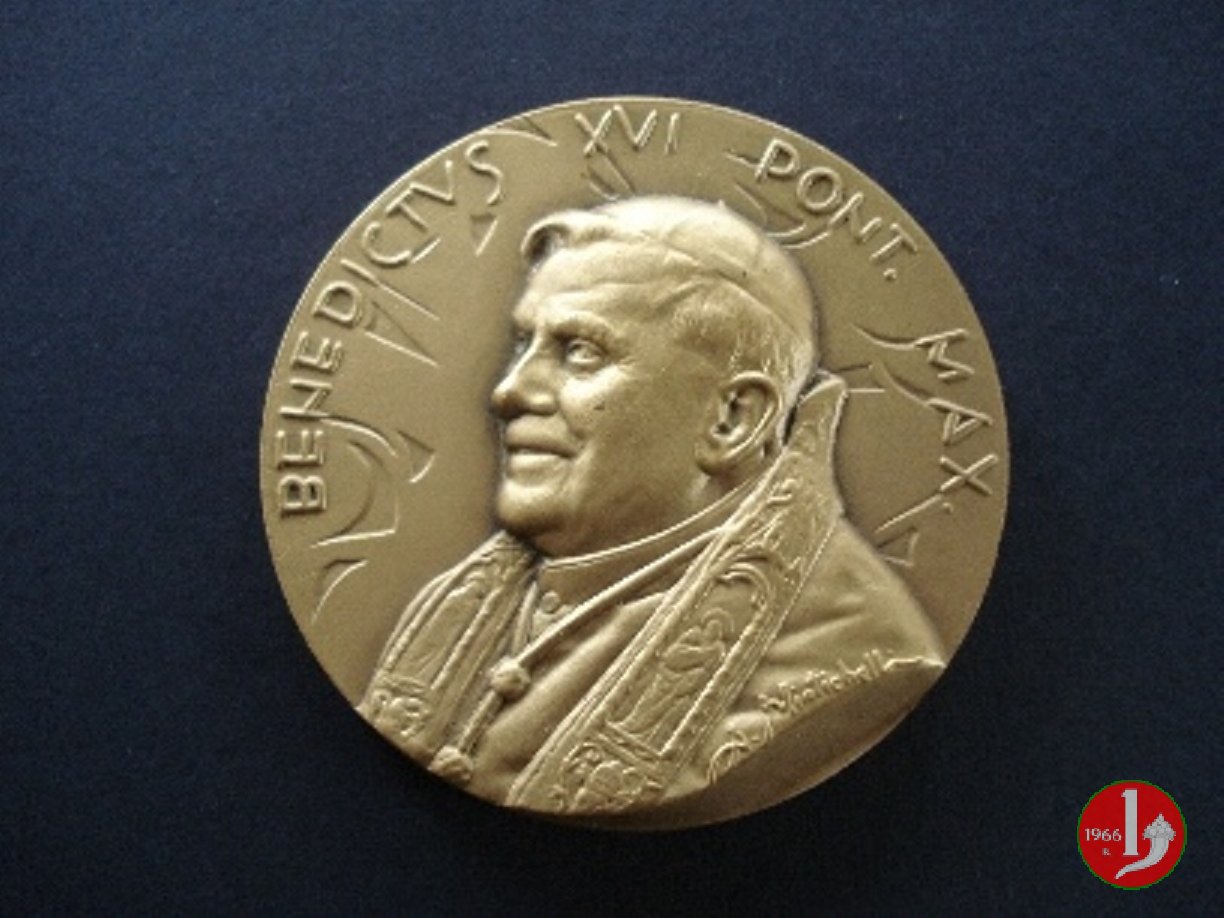 Cooperatores Veritatis 60mm Dritto: BENEDICTVS XVI PONT. MAX. busto a sx con berretto, mozzetta e stola sul busto: A. MISTICHELLI Stemma sul fianco del Colonnato di Piazza San Pietro, sullo sfondo a dx la facciata della Basilica Vaticana in basso, corsivo: S.M. | |