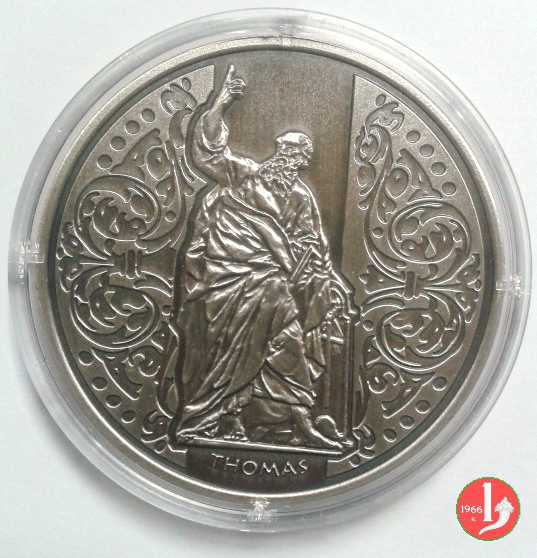 Gli Apostoli - Tommaso Dritto: SUCCESSOR • PRINCIPIS • APOSTOLORUM _ • • • • • • • BENEDICTUS XVI • • • • • • • entro semicerchio perlinato: busto a dx con berretto, mozzetta e stola in esergo: THOMAS | |