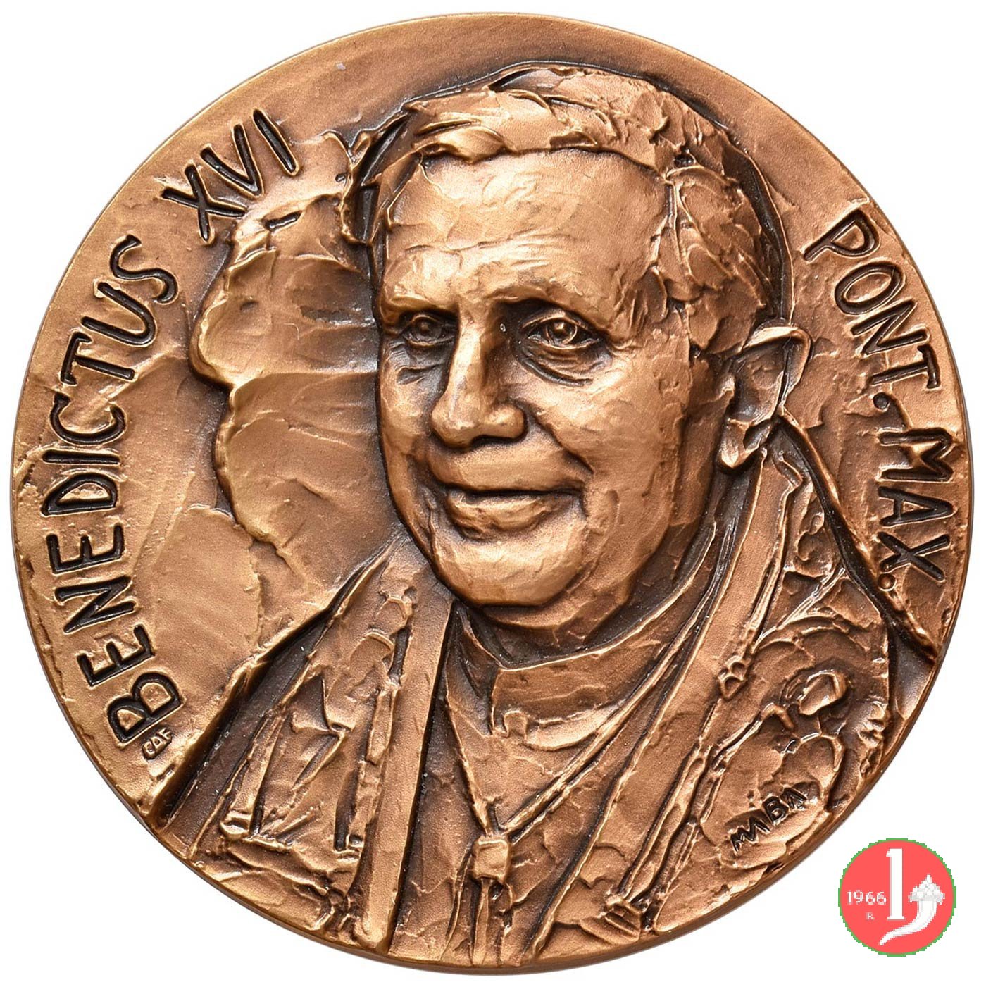 Consegna delle Chiavi Dritto: BENEDICTVS XVI. _ PONT. MAX. Busto a sx con berretto, mozzetta e stola sopra la spalla sx: A. Mistichelli | |