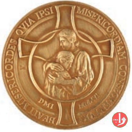 A. IV - Beati i Misericordiosi Dritto: _ • FRANCISCVS PONT MAX ANNO IV • Stemma Papale su chiavi decussate e sormontato da mitra tripartita e su nastro sul nastro: MISERANDO ATQVA ELIGENDO sotto: C. TESTA Su Croce delineata ed entro cerchio: abbraccio di donna con ragazzo sotto, ai lati: DMI _ MMXVI nel campo, a sx: IPZS | |
