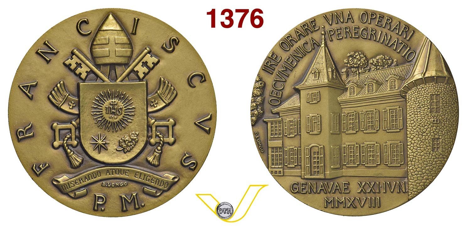 Viaggio a Ginevra 21-06-2018 Dritto: FRANC _ ISCVS Stemma Papale sormontato da mitra tripartita e su chiavi decussate sotto, entro nastro: MISERANTO ATQUE ELIGENDO sotto: D. LONGO in basso: P. M. vista del castello di Chillon a sx, presso il bordo: D. LONGO in esergo: GENAVAE XXI • IVN = MMXVIII | |