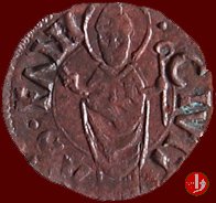 Picciolo Dritto: ![]() PP •INNO •VIII cinque puntini a x / Stemma in scudo sfaccettato sormontato da chiavi decussateVerso: S •P CIVITAS •FANI / Il Santo nimbato e mitrato in piedi di fronte benedicente e con pastorale | |