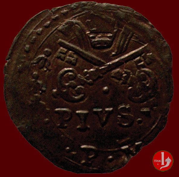 Quattrino (stemma e S.Paterniano) Obverse: PIVS •__P •P •V • / Stemma ovale in cornice ad intagli sormontato da chiavi dec. e tiara Reverse: S •PATERNI__ANI •FANI / S. Paterniano in piedi di fronte a testa nuda con mitria nella mano sinistra | |