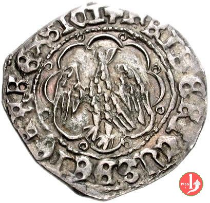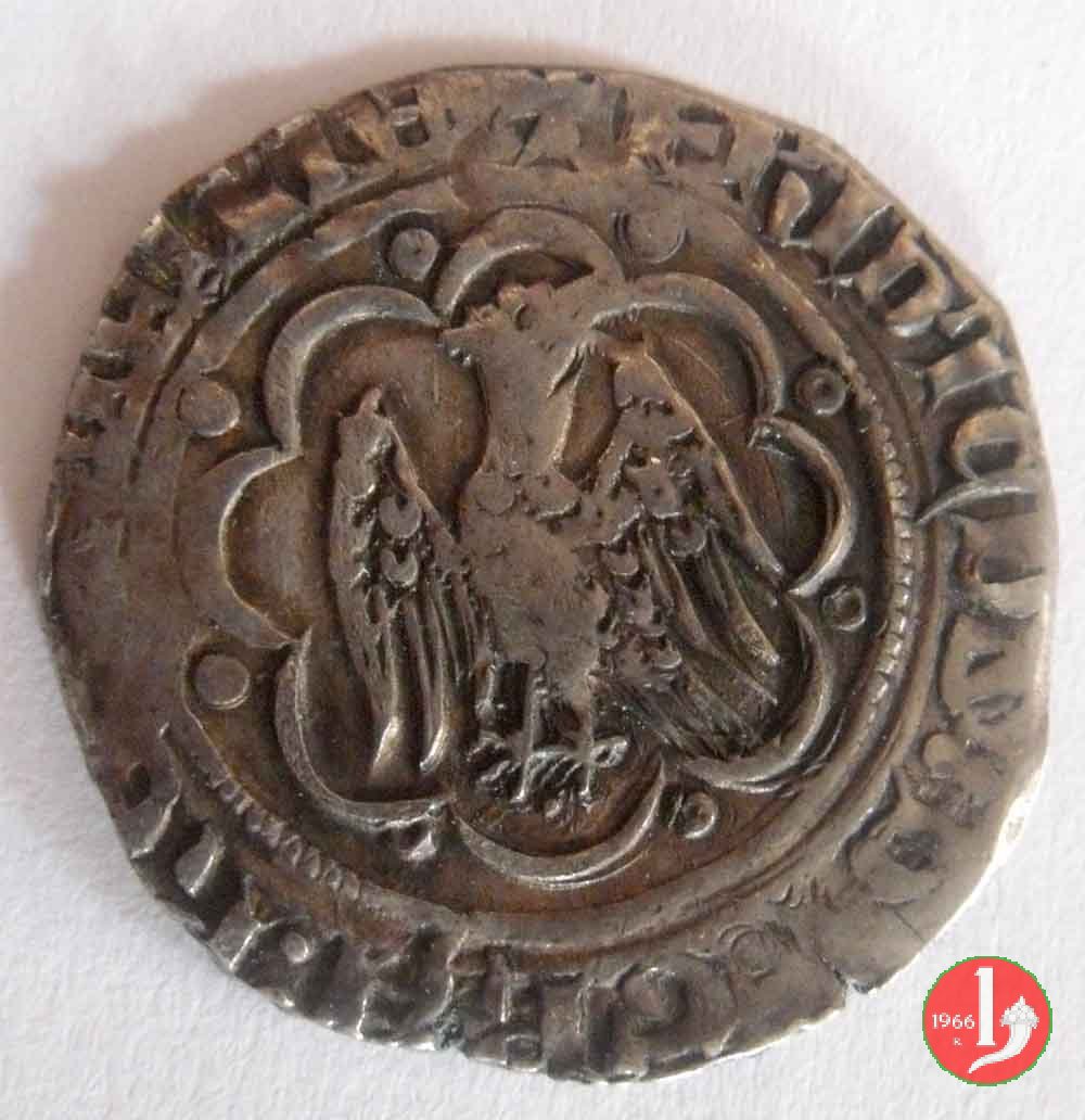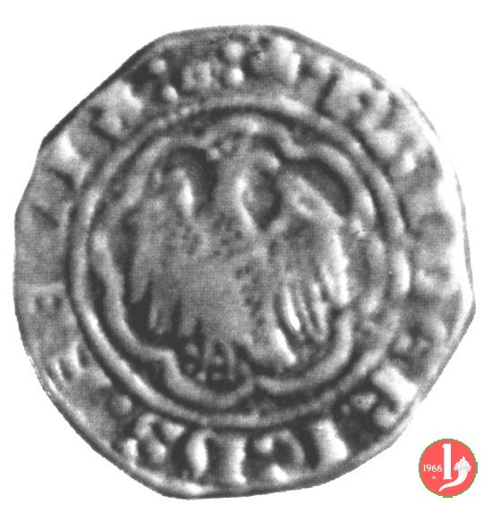 pierreale I tipo ( M P fino a S P S) Dritto: Aquila coronata ad ali spiegate volta a sinistra con testa retrospicente entro ornato di otto segmenti di cerchio e otto anelletti.