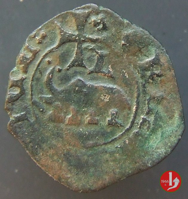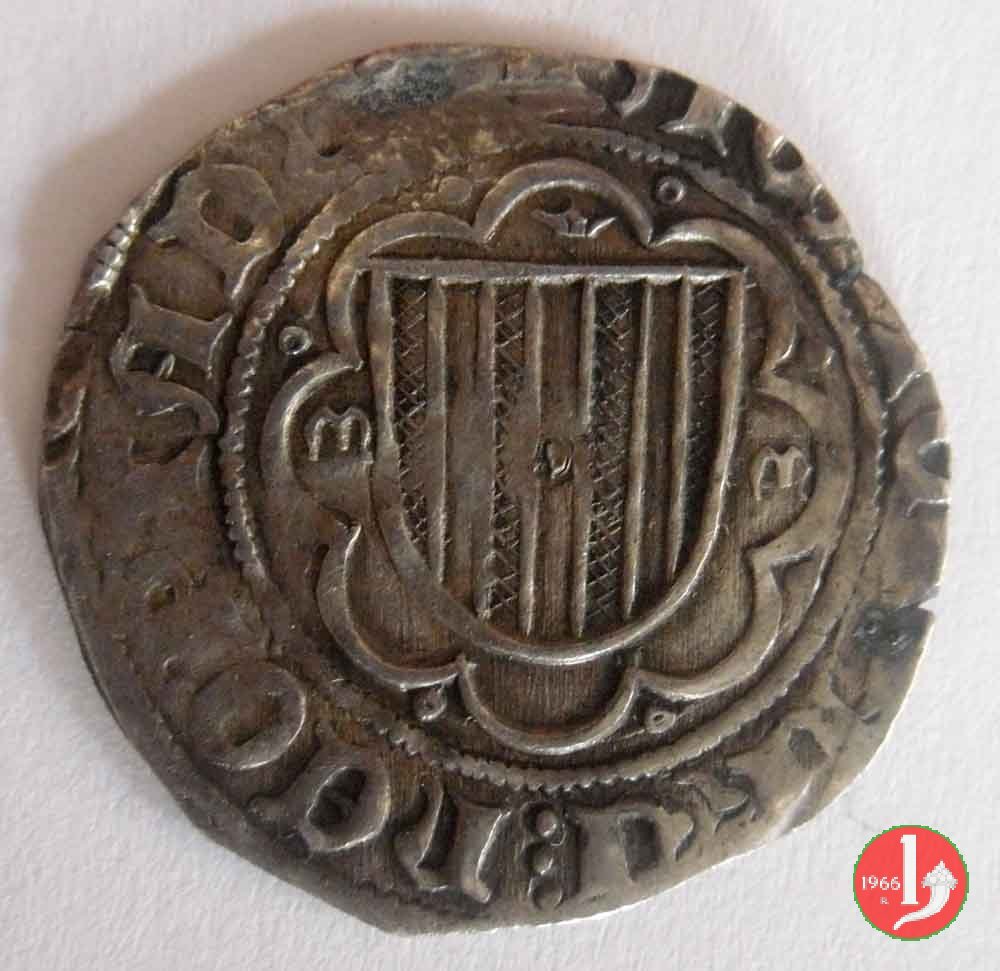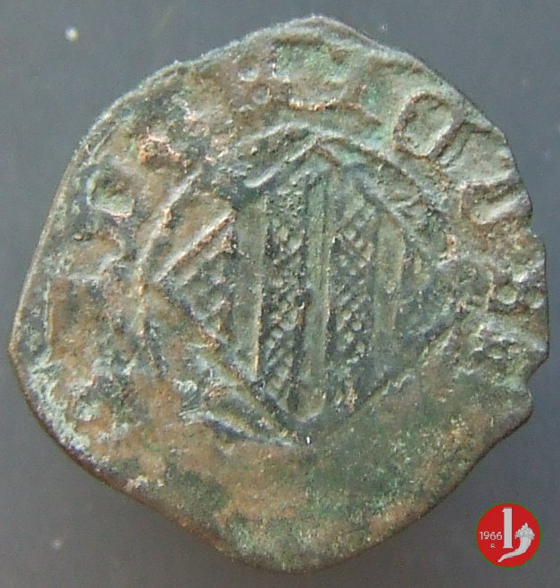 denaro (coll'elefante) Dritto: Stemma aragonese a losanga, con rosette ai quattro lati, entro circolo perline.