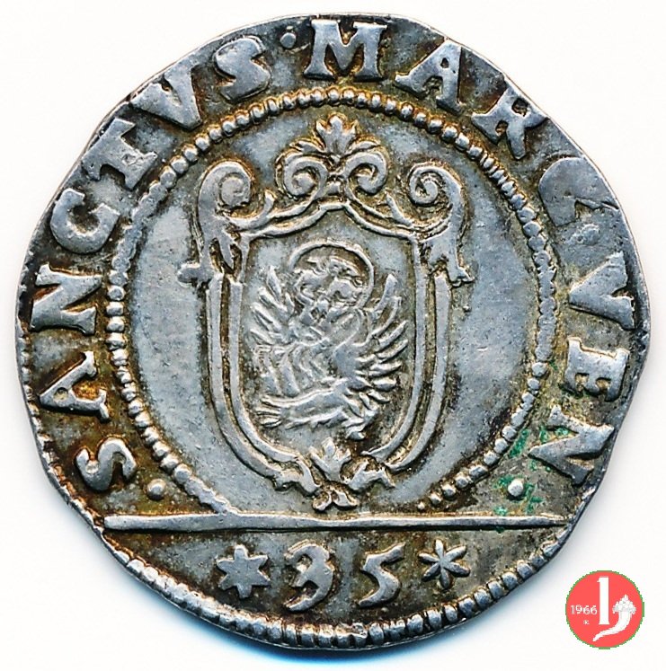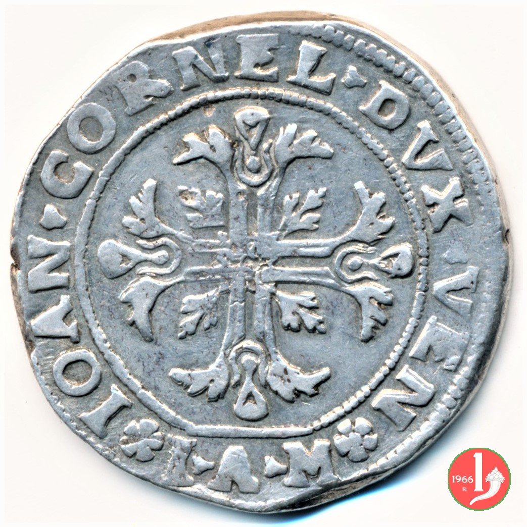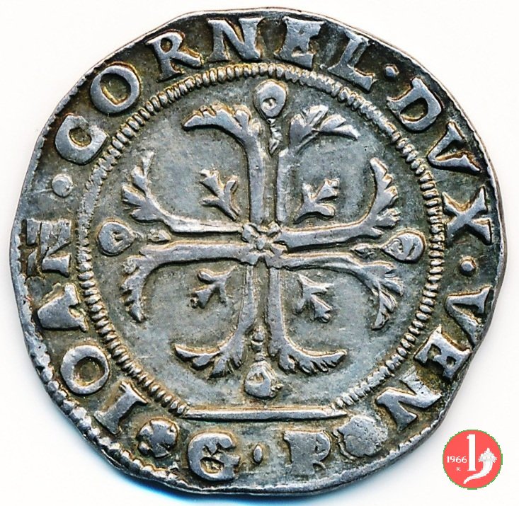 Quarto di scudo della croce Dritto: IOAN • CORNEL • DVX • VEN, croce di cardo, in es. iniziali del massaro Verso: SANCTVS • MARC • VEN, scudo con leone in soldo, in es. * 35 * | |