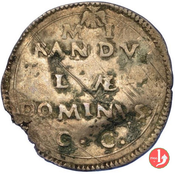 Ducato con stemma e scritta Dritto: Anepigrafe Stemma interzato in fascia, sormontato da aquila bicipite con teste nimbate ed ali spiegate. Ai lati, M C ed • I • • F • su due righe. Nel campo: • MIRANDVLÆ • DNS • • C • C • su quattro righe. | |