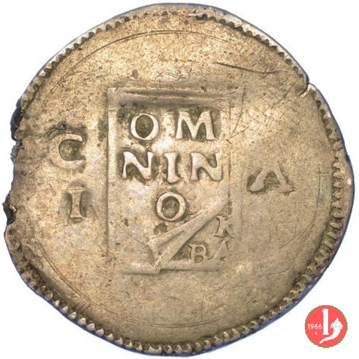 Sesino con San Possidonio (anepigrafe) Dritto: • IO • FR • • M • D • C • C • Stemma interzato in fascia, sormontato da aquila bicipite con teste nimbate. San Possidonio mitrato di fronte, benedice con la mano destra e tiene il pastorale nella sinistra; ai lati, S P. | |