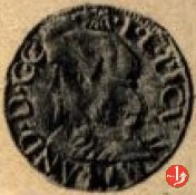 Lira con busto e libro Dritto: • IO • FRANCISCVS • PICVS • Busto a sinistra a testa nuda e senza barba. Nel campo: libro chiuso con l'angolo inferiore rialzato, avente le scritte OMNINO su tre righe sulla pagina esterna, e • B • KA a triangolo nell'angolo inferiore della pagina interna. Ai lati, C I su due righe a sinistra, e A a destra. | |
