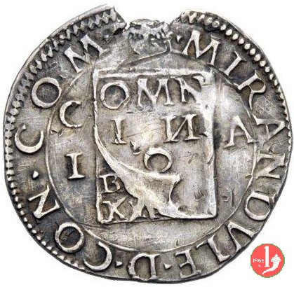 Da 3 ducati Dritto: (aquiletta) ![]() IO ![]() FR ![]() PICVS ![]() MIRANDVLÆ ![]() D ![]() CO ![]() C ![]() ![]() Nel campo: libro chiuso con l'angolo inferiore rialzato, avente le scritte OMNINO su tre righe sulla pagina esterna, e • B • KA a triangolo nell'angolo inferiore della pagina interna.