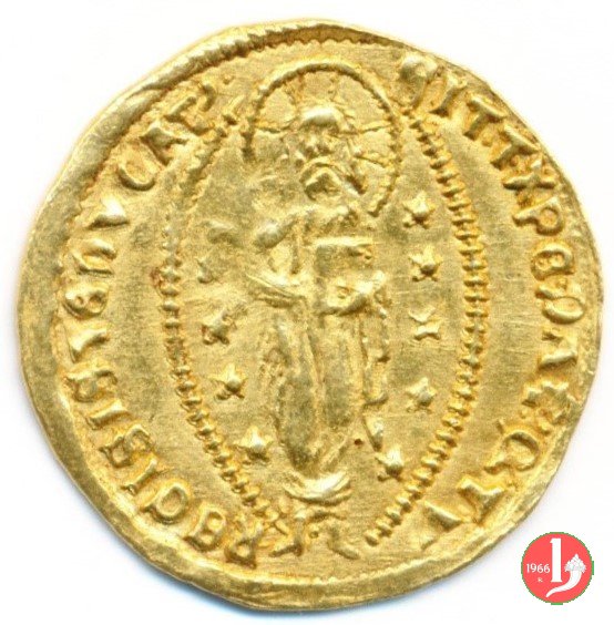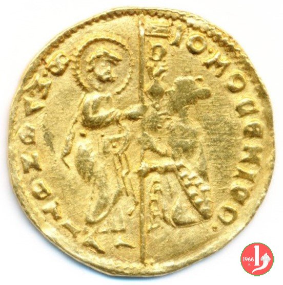 Ducato Dritto: IO • MOCENIGO • S • M • VENETI, S.Marco porge il vessillo al doge inginocchiato, lungo l'asta DVX Verso: SIT • T • XPE • DAT' • Q • TV REGIS ISTE DVCAT' • , il Redentore in mandorla stellata | |