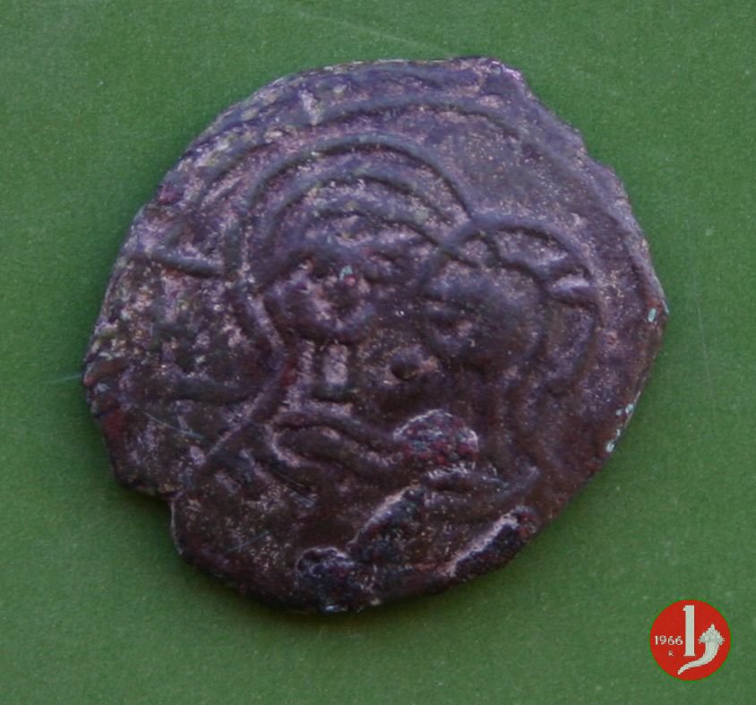 Frazione di follaro Dritto: REX / • W • in due righe nel campo entro cerchio lineare; legenda araba marginale "coniato a Messina l'anno cinquantesimo cinquecentesimo (1155)" Verso: Busto della vergine con bambino,a sinistra MP / OY |