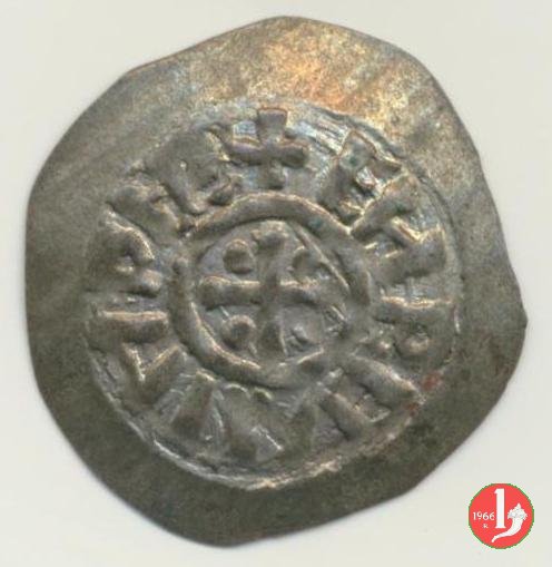 Denaro Dritto: + ENRICVS IMPER Croce patente con cunei alle estremità accantonata da quattro bisanti. |