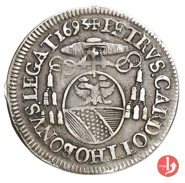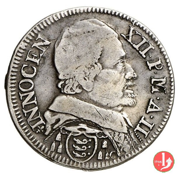 Dodicesimo di scudo Dritto: Busto a destra con camauro, in basso armetta del vicelegato d'Avignone Mons. Dolfin. Legenda da SX: INNOCEN • - XII • P • M • A • anno di pontificato • In basso Legenda da DX: |