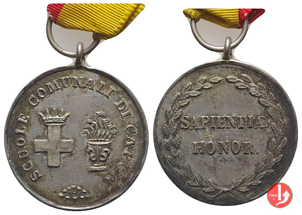 Scuole Comunali di Capua Dritto: SCUOLE COMUNALI DI CAPUA Croce coronata e Stemma coronato in basso: triangolo perlinato con punto al centro | |
