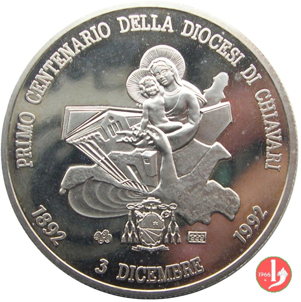 Dritto: PRIMO CENTENARIO DELLA DIOCESI DI CHIAVARI = 1892 3 DICEMBRE 1992