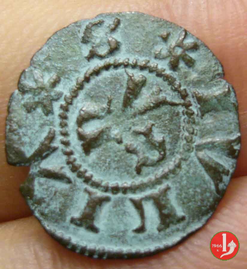 Quattrino (M e croce) Dritto: ✠°A°CI°RA°TA° / nel campo grande M gotica Verso: ✠°S°IV°LI°ANS / nel campo Croce con estremità forcute | |