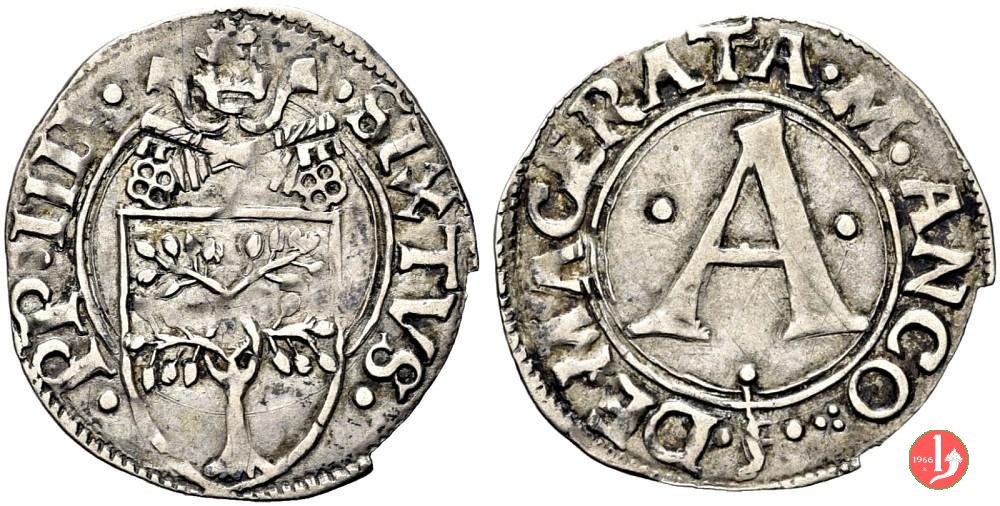 Bolognino marchigiano Dritto: •SIXTVS •__ •PP •IIII • / Stemma semiovale Verso: (da sinistra) •DE •MACERATA •M •ANCI ![]() • / Grande A accostata da 3 punti; in basso nel giro segno di zecca |
