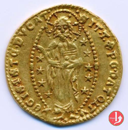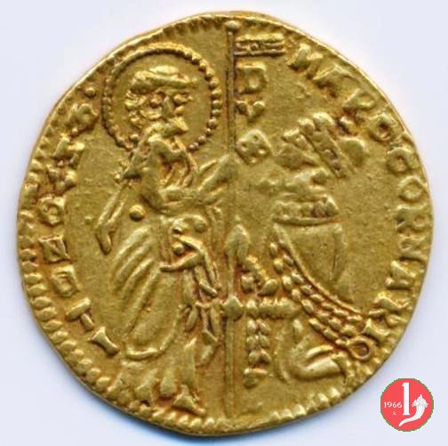 Ducato Dritto: MARC' • CORNARIO • S • M • VENETI, S.Marco stante porge il vessillo al doge inginocchiato, lungo l'asta DVX Verso: SIT • T • XPE • DAT • Q TV REGIS • ISTE • DVCAT', il Redentore stante in mandorla stellata | |