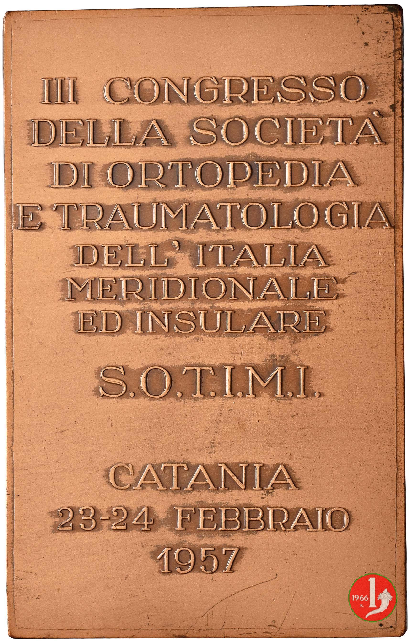 Verso: nelc ampo: III CONGRESSO = DELLA SOCIETA' = DI ORTOPEDIA = E TRAUMATOLOGIA = DELL'ITALIA = MERIDIONALE = ED INSULARE = S.O.T.I.M.I. = CATANIA = 23-24 FEBBRAIO = 1957