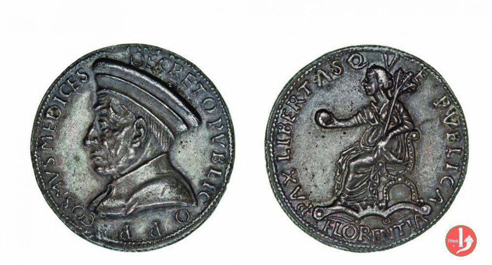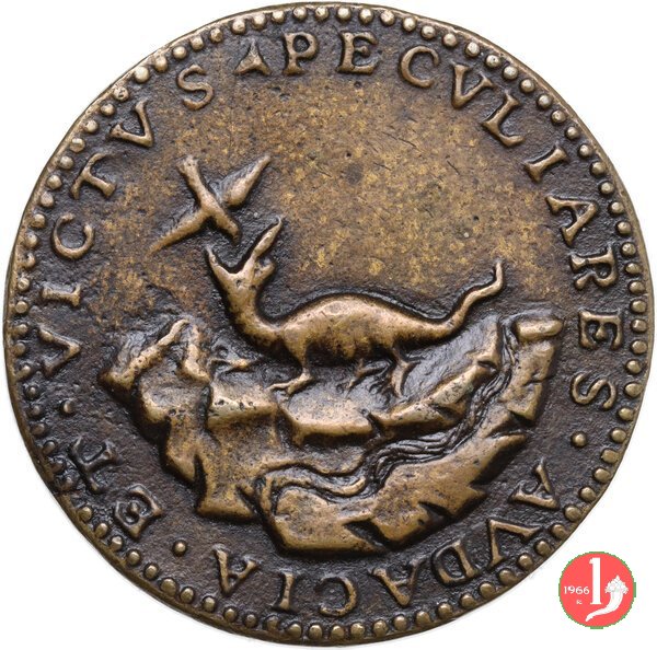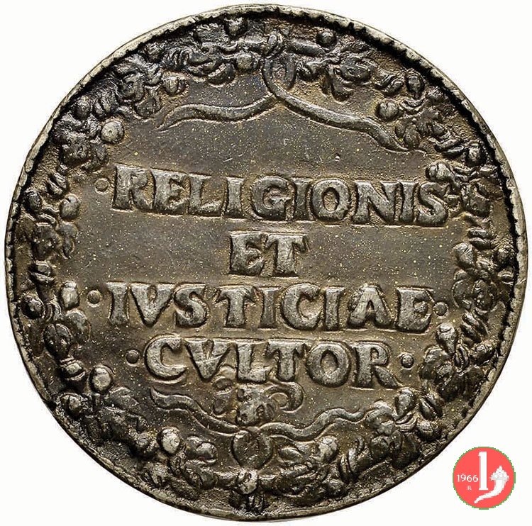 Verso: nel campo, entro corona floreale: AEMVLVS = OMNIS A = NTIQVITATI = S ET DOCT = RINAE