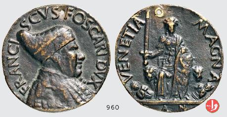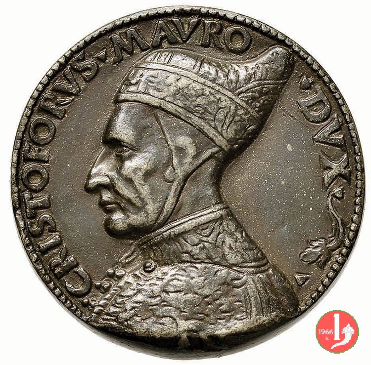 Dritto: busto a dx con corno dogale su fondo campito a cerchi