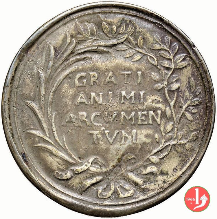 Verso: tra rami di palma e alloro: GRATI = ANIMI = ARGVMEN = TVM