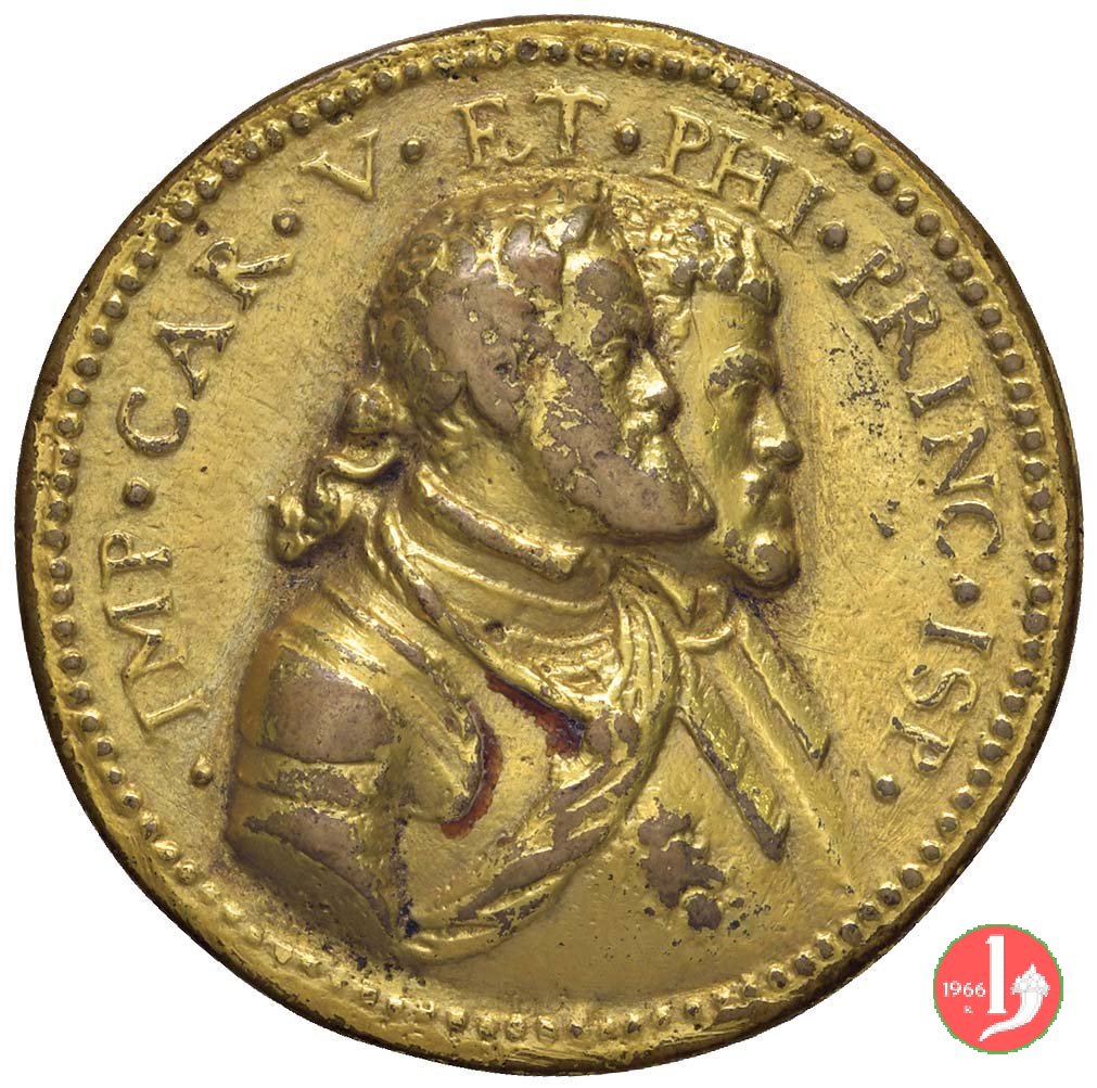 busti accollati a dx di Carlo V corazzato e del Principe Filippo
