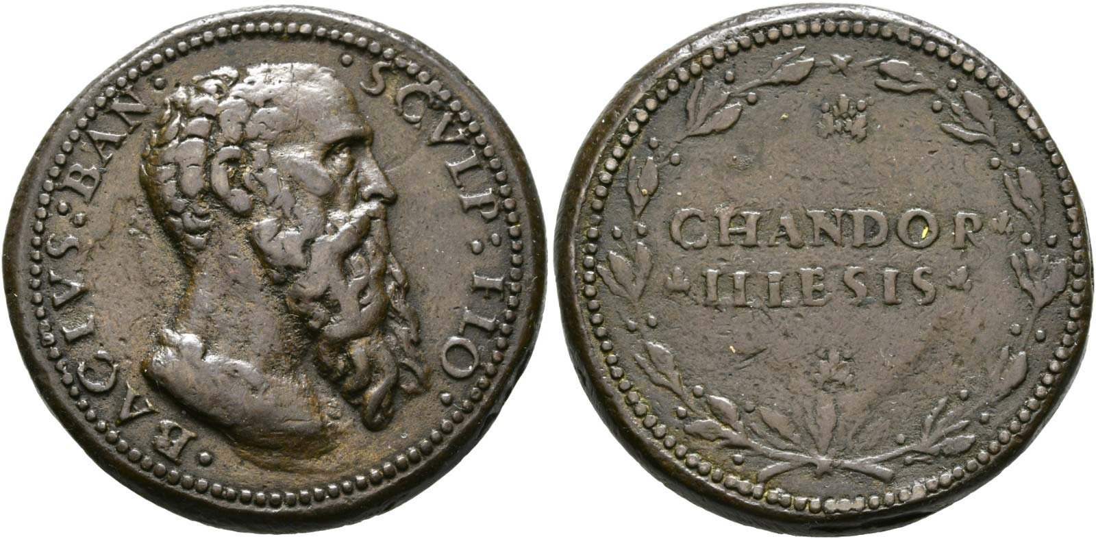 Verso: nel campo entro corona di alloro: CHANDOR = * ILLESVS *