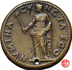 Verso: figura allegorica seduta su sedia a dx, regge scettro e alza il coperchio di urna