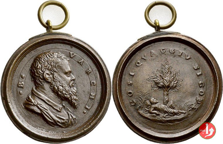 Benedetto Varchi Dritto: _ • B • _ VARCHI • busto a dx con mantello figura distesa sotto ad albero | |