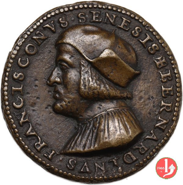 Bernardino Francesconi -VT1070 Dritto: _ • ✠ BERNARDINVS • FRANCISCONVS • SENENSIS busto a sx con cappello Stemma Francesconi tra nastri | |