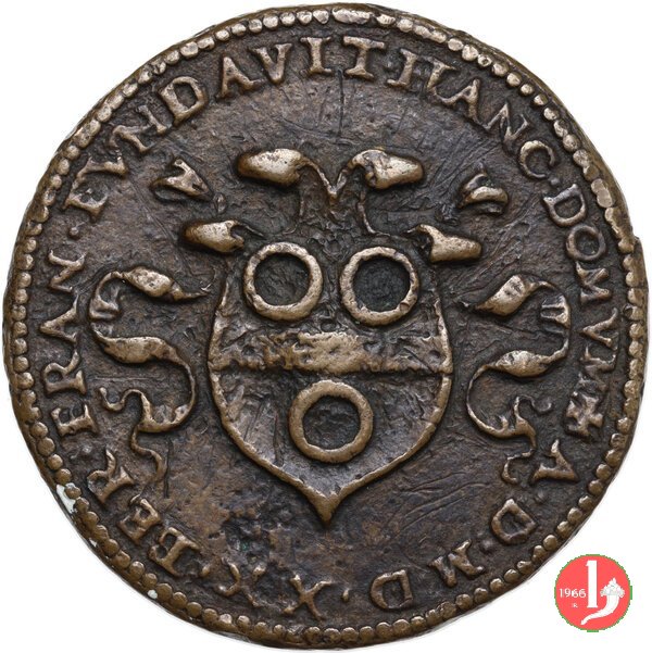 Orsola Lopez 1555 -VT1048 Dritto: _ • VRSVLAE • LOPES M • P • C • AET • XVIII busto a sx con cuffia e veli sulla troncatura del busto: 1555 | |