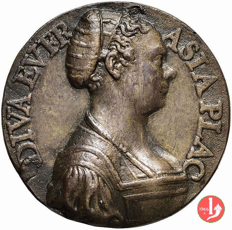 Lucrezia Orsini Salviati 1571 -VT1062 Dritto: _ • LVCRETIA SALVIATI VRSINA • 1571 busto a sx con capelli raccolti da trecce e fiori sul capo e collana di perle sul taglio spalla: • P • | |