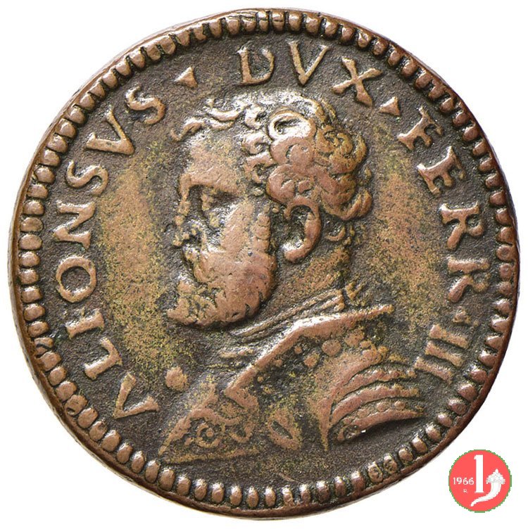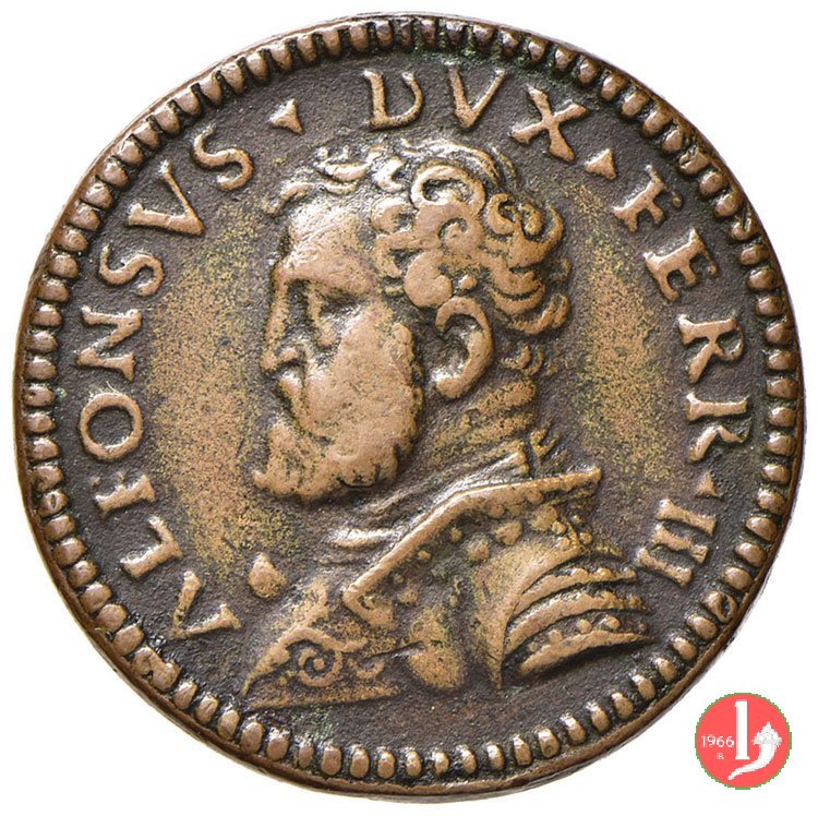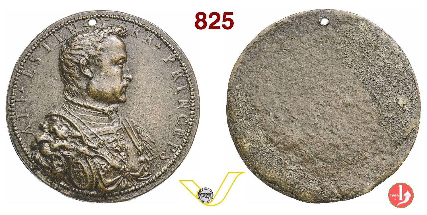 Alfonso II d'Este - Uniface -B131 Dritto: ALF • ESTEN • FERR • PRINCEPS busto corazzato a dx con medaglione appeso a catena | |