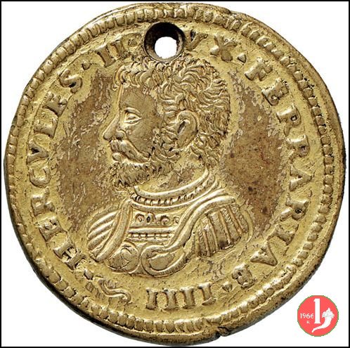 Ercole II d'Este -Uniface -B107 Dritto: _ • HERCVLES II FERRARIAE • DVX • IIII • busto corazzato e paludato a sx con barba | |