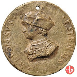 Alfonso II d'Este - Uniface -B137 Dritto: ALFONSVS EST II DVX FERR • V • busto a sx su mensola | |