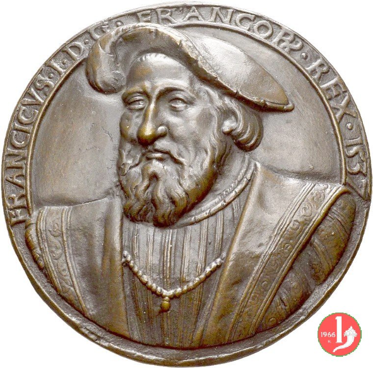 Francesco I Re di Francia 1537 Dritto: FRANCISCVS • I • _ • D • G • FRANCORVM • REX • 1537 busto di 3/4 a sx con cappello piumato e due collane | |
