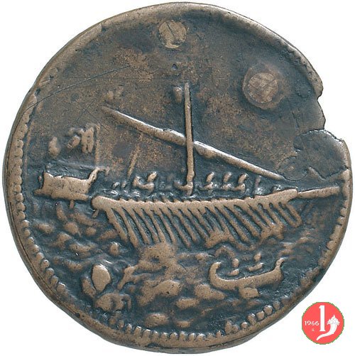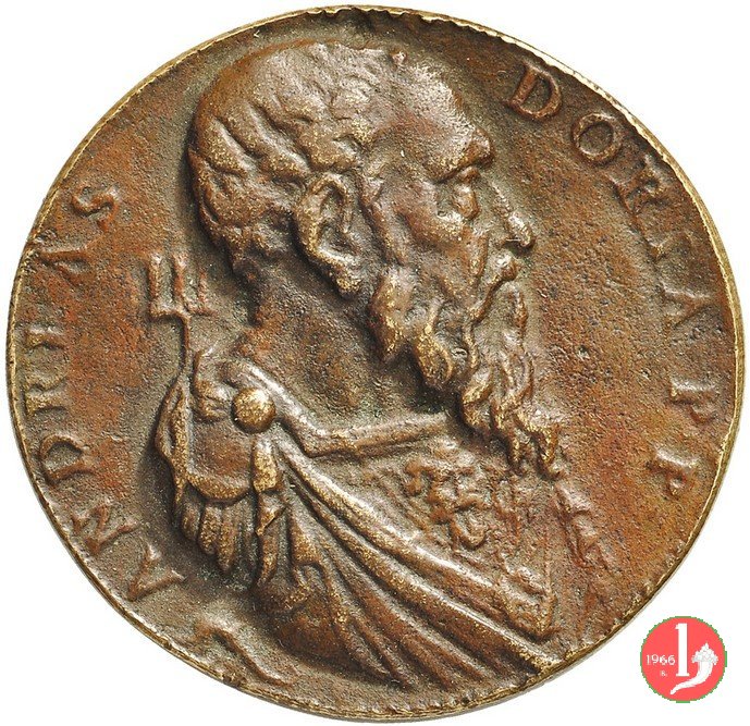 Andrea Doria - I tipo Obverse: ANDREAS _ DORIA P.P. busto corazzato a dx con mantello nel campo, a sx: tridente sotto: in basso: scialuppa, con due persone a bordo, rimorchiata da un delfino | |