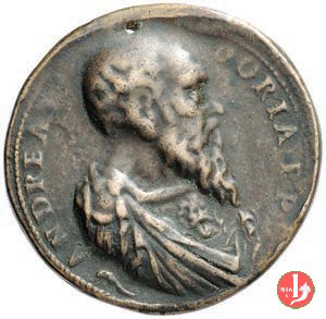 Andrea Doria e Dragut -A143 Obverse: ANDREAS _ DORIA • P • P • busto corazzato a dx di Andrea Doria con alle spalle un tridente sotto: | |