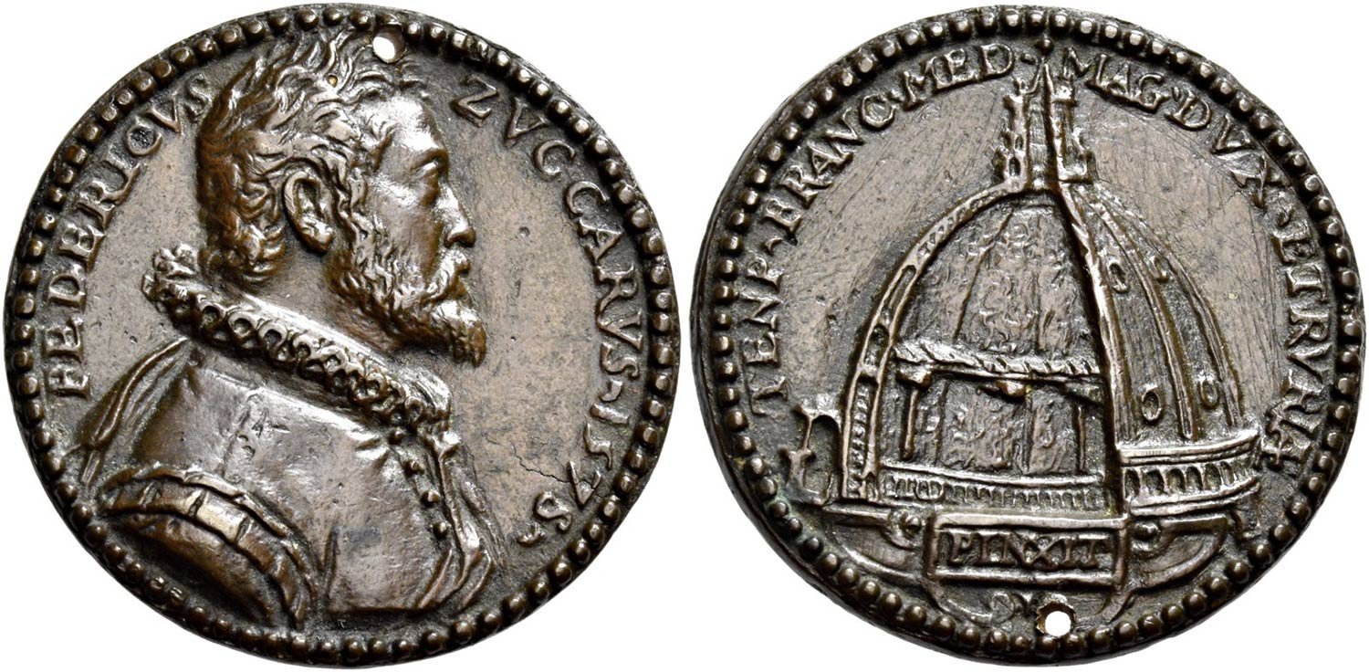 Urbino - Federico Zuccari 1578 -VT1066 Dritto: FEDERICVS _ ZVCCARVS • 1578 • busto a dx con ampio collare Spaccato della cupola di Santa Maria del Fiore | |