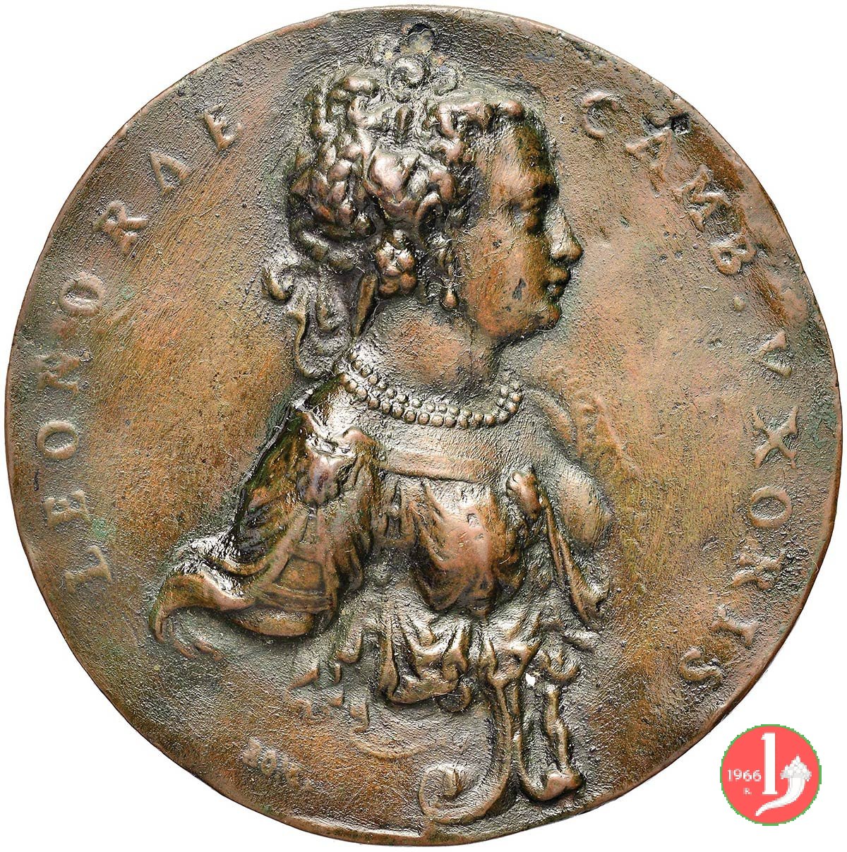 Cremona - Eleonora Cambi Dritto: LEONORAE _ CAMB • VXORIS busto a dx con capelli raccolti sul capo da file di perle e trecce, collana a due fili di perle e abito drappeggiato sotto: BOM. | |