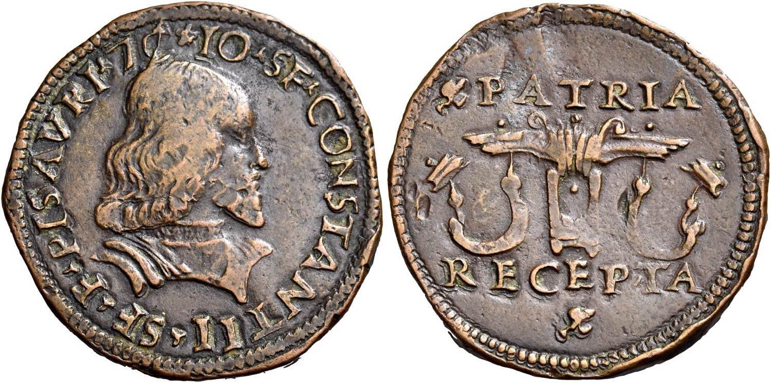 Pesaro - Giovanni Sforza 1503 Dritto: IO • SF • CONSTANTII • SF • F • PISAVRI • 7C * busto corazzato a dx giogo di fronte sotto: RECEPTA = | |