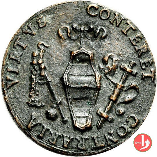 Francesco Visdomini 1564 Dritto: FRANC • VISDOMINVM • FERRARIEN _ 1564 busto a dx Mano esce dalle nubi e regge spada infiammata | |