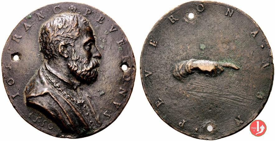 Cuneo - Giovanni Francesco Peverone Dritto: IO • FRANC * PEVERONVS Busto a dx con giacca e catena sotto: 1550 mano che punta lindice verso lalto | |